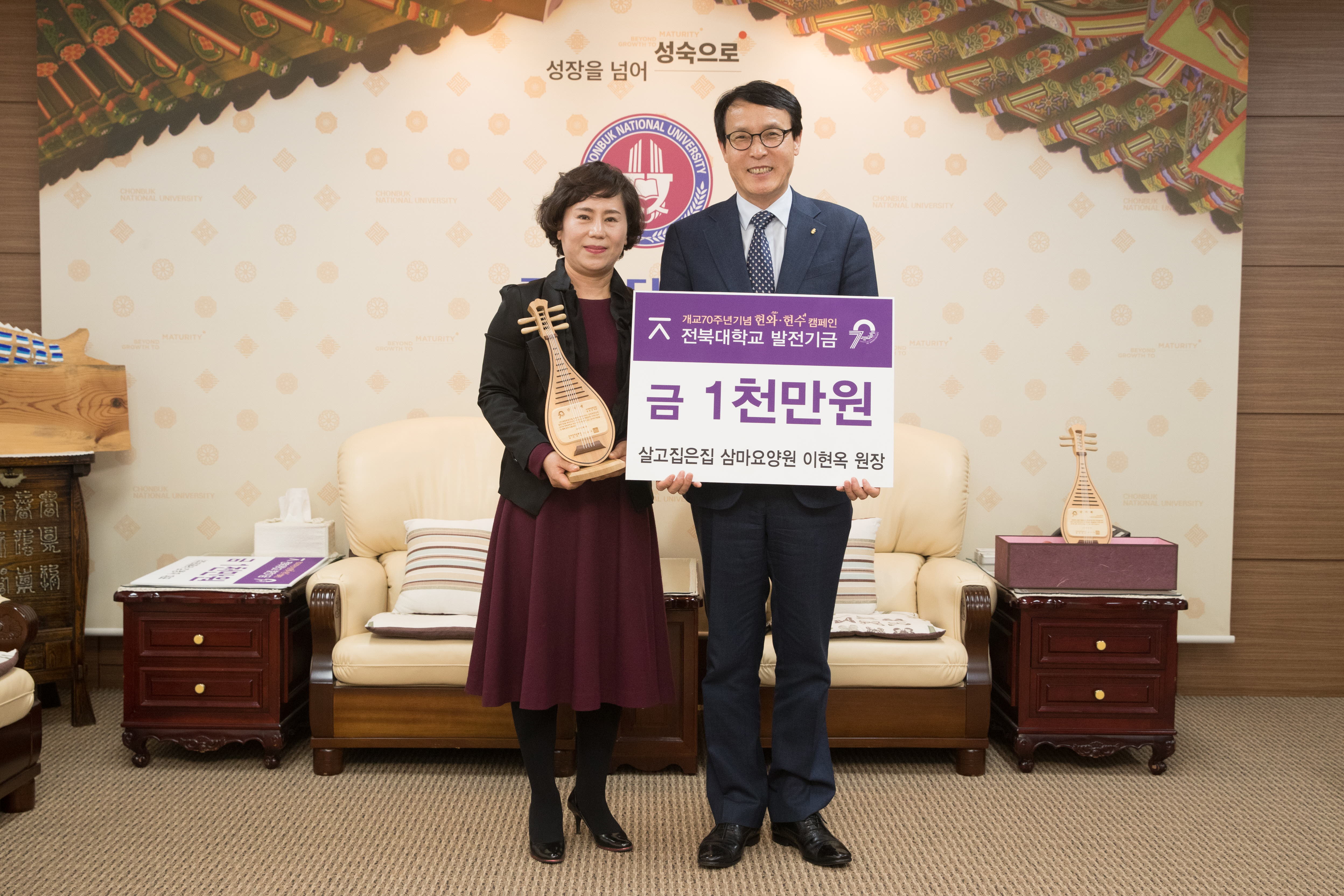 이현옥 대표를 “섬김과 봉사의 마음으로 요양원을 운영해오면서 지역 대표 대학이 우수인재를 양성하는 데 늘 보탬이 되고 싶었다”며 “개교 70주년을 맞은 전북대가 지역의 대표 브랜드가 되는 데 밀알이 되길 바란다”고 말했다.
