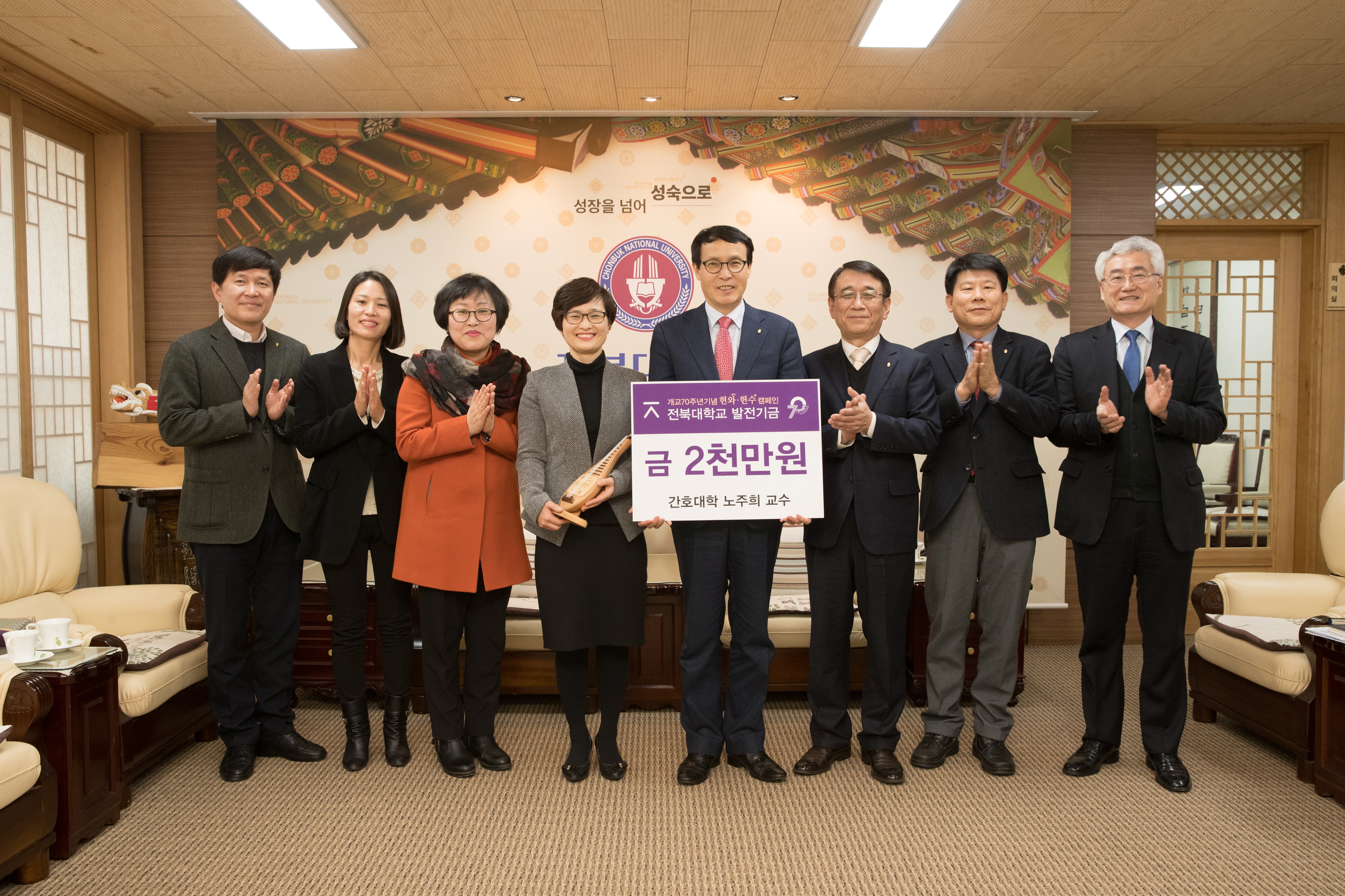 우리대학 동문(간호학과 97학번)이기도 한 노 교수는 대학이 가장 한국적인 캠퍼스 구축을 위해 진행하는 ‘헌와·헌수 캠페인’에 동참하고 간호학과 경쟁력 향상을 위해 기금을 기탁했다.