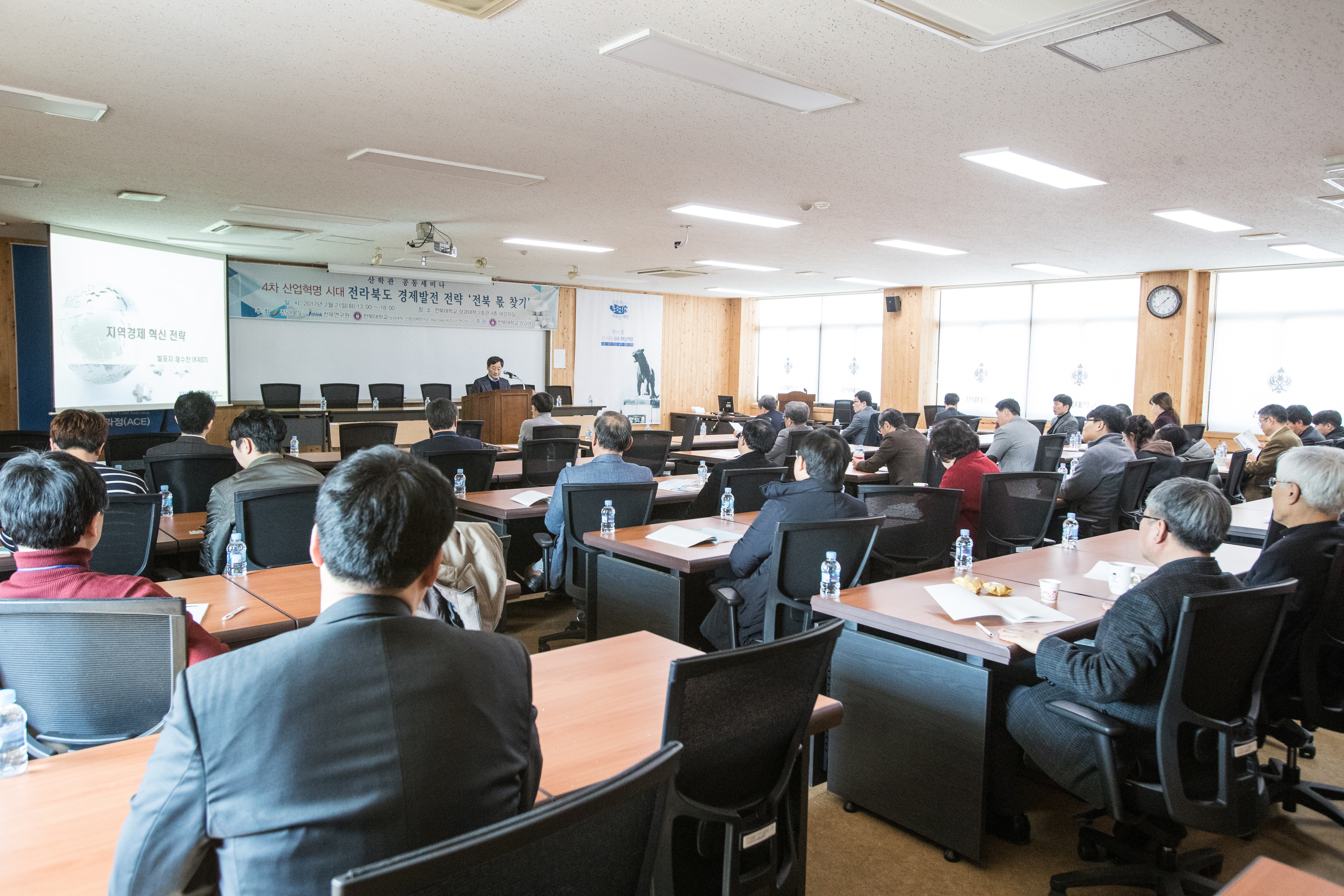 우리대학 상과대학과 전북연구원, 전북도가 2월 21일 우리대학 상대에서 ‘4차 산업혁명 시대 전라북도 경제발전 전략과 전북 몫 찾기’라는 주제로 산·학·관 공동 세미나를 개최한 것.