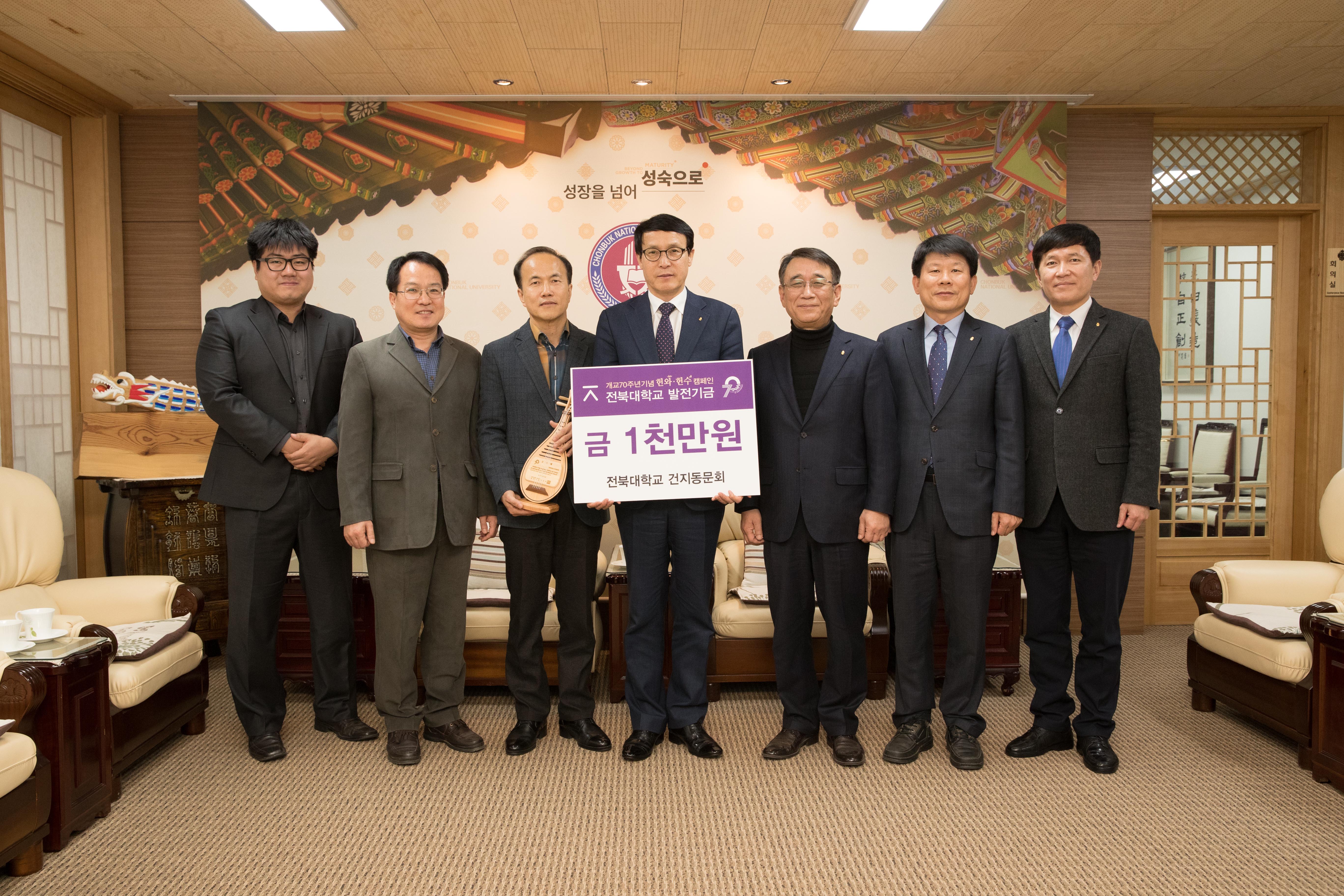 대학 직원들로 구성된 건지동문회(회장 하태종)가 20일 오후 4시 이남호 총장을 찾아 1천만 원의 발전기금을 기탁한 것.