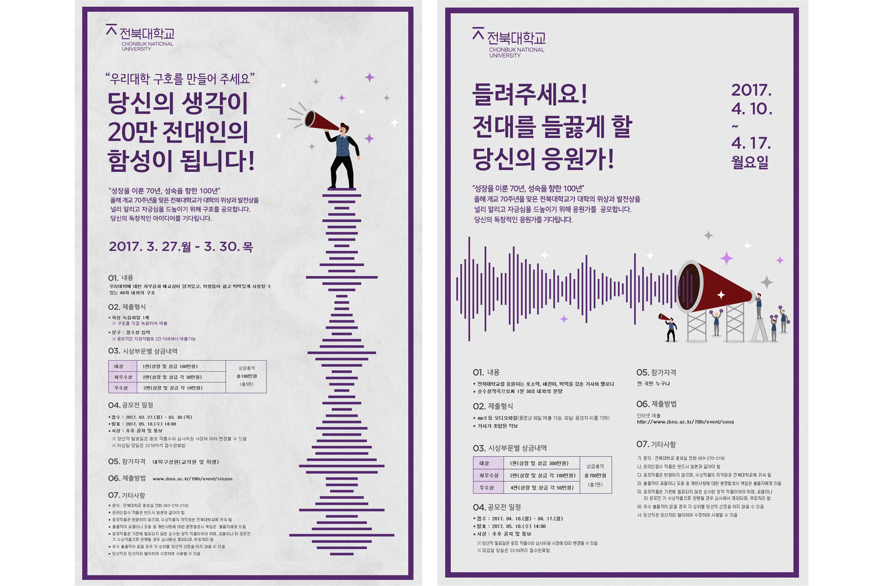 “개교 70년, 전대의 자긍심이 될 교호와 응원가를 공모합니다.”