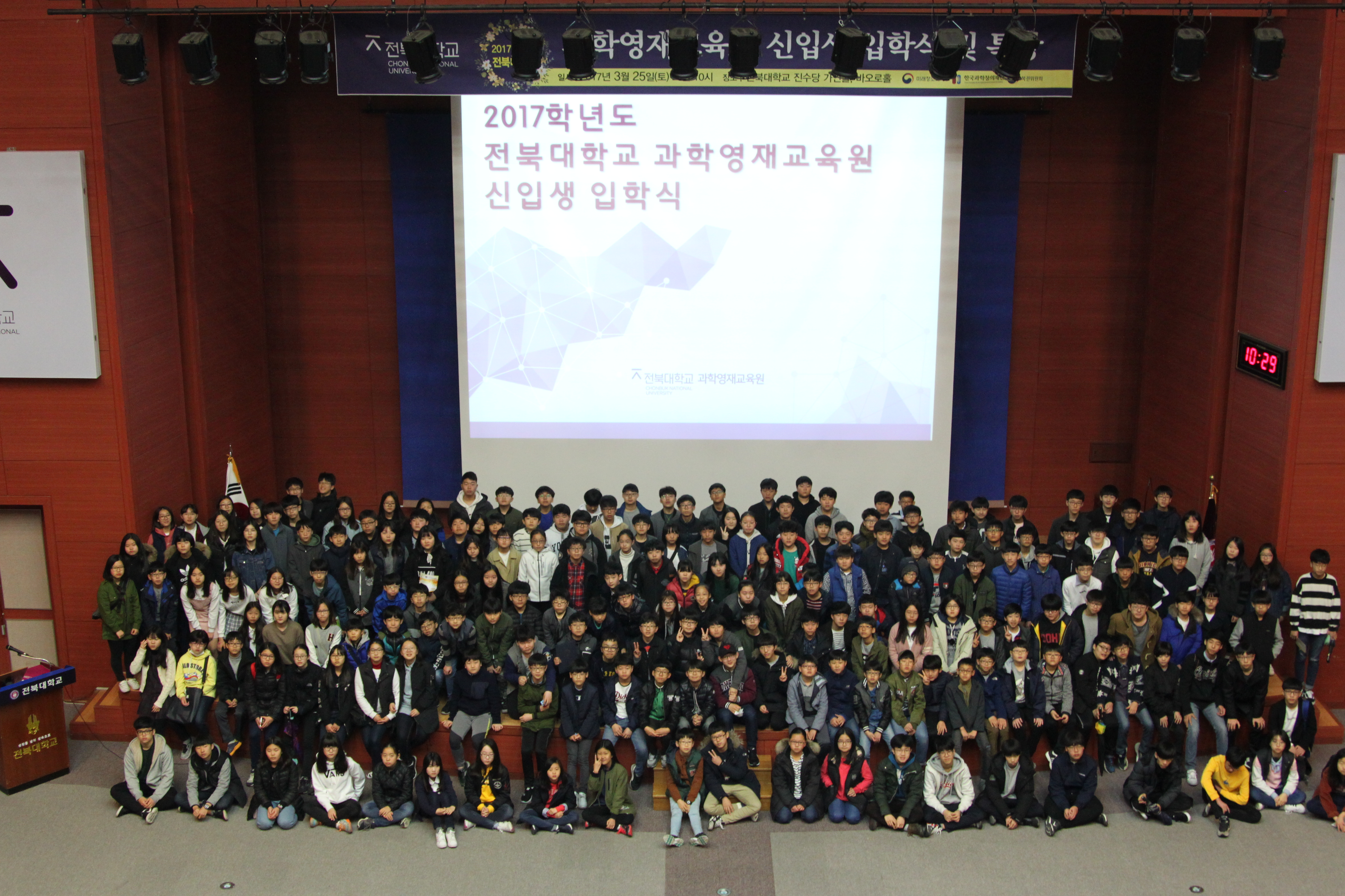 이날 입학식에는 도내 영재학생과 학부모, 담당 교수 등 250여 명이 참석한 가운데 진행됐고, 2부에서는 한국표준과학연구원 이경석 박사의 특별강연도 이어졌다.