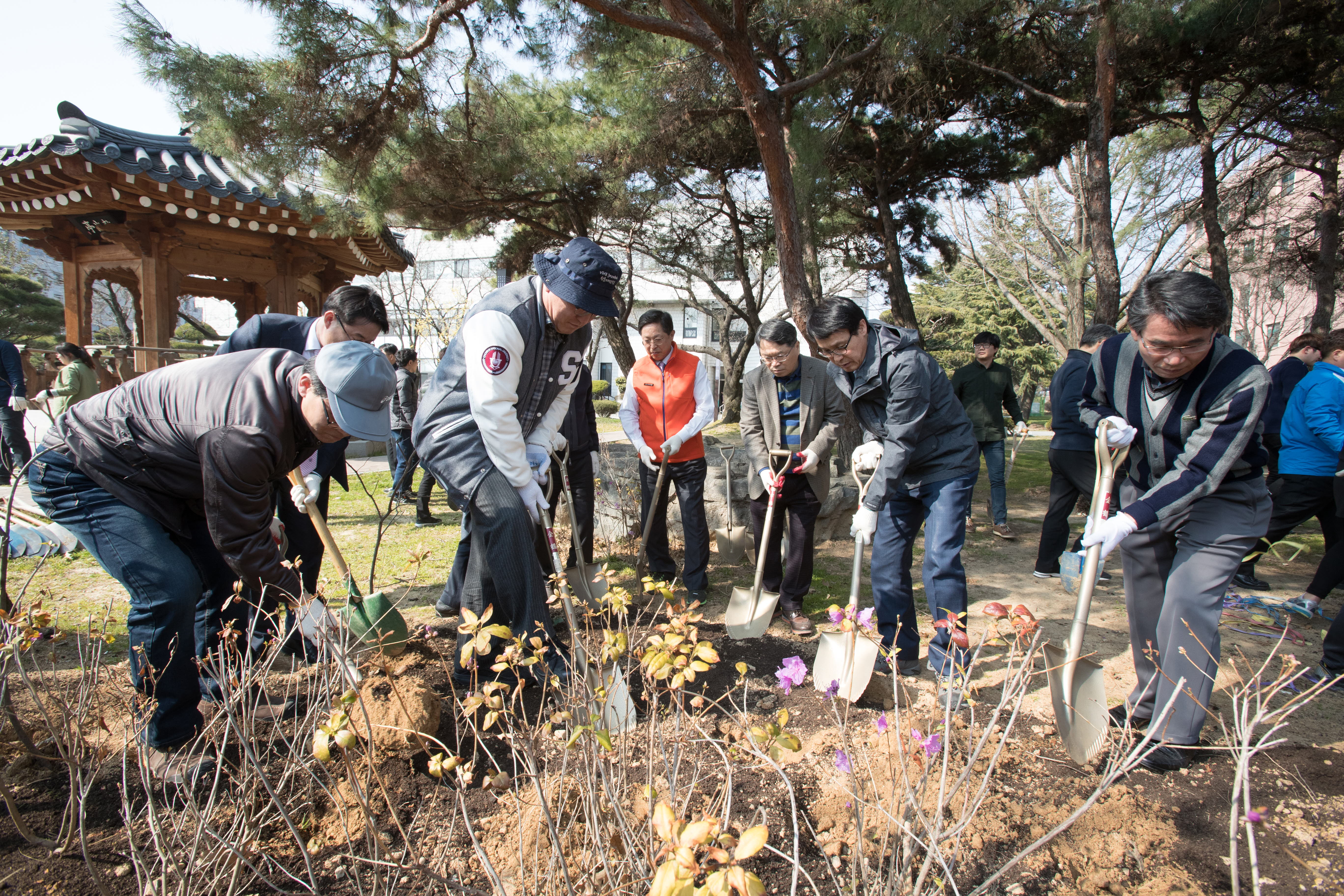 우리대학은 식목일을 앞둔 3월 30일 오후 이남호 총장을 비롯한 대학 구성원 100여 명이 참석해 본부 앞에서 인문대, 사회대로 향하는 ‘인사동길’과 대학 외곽 인도를 캠퍼스 안으로 집어넣어 조성한 ‘공감터길’ 등에 진달래 5천주를 심었다.