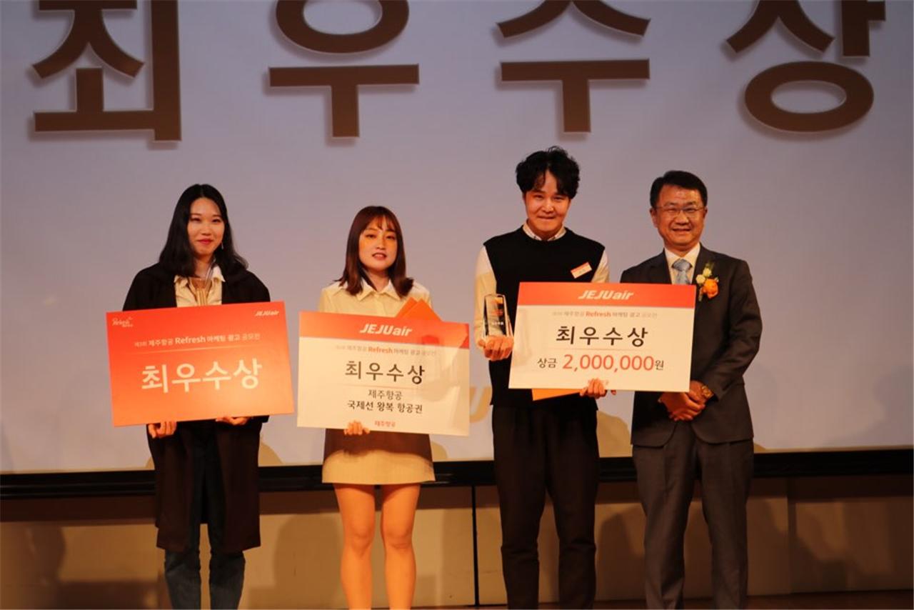 이번 공모전은 전국 321개 팀 989명이 참여한 가운데 1차 예선과 2차 프레젠테이션을 통해 제주항공의 활성화를 위한 마케팅과 광고 전략을 제시하고 발표하는 방식으로 진행됐다. 3인의 심사위원과 100인의 청중평가단의 점수를 합산해 최종 순위가 매겨졌다.