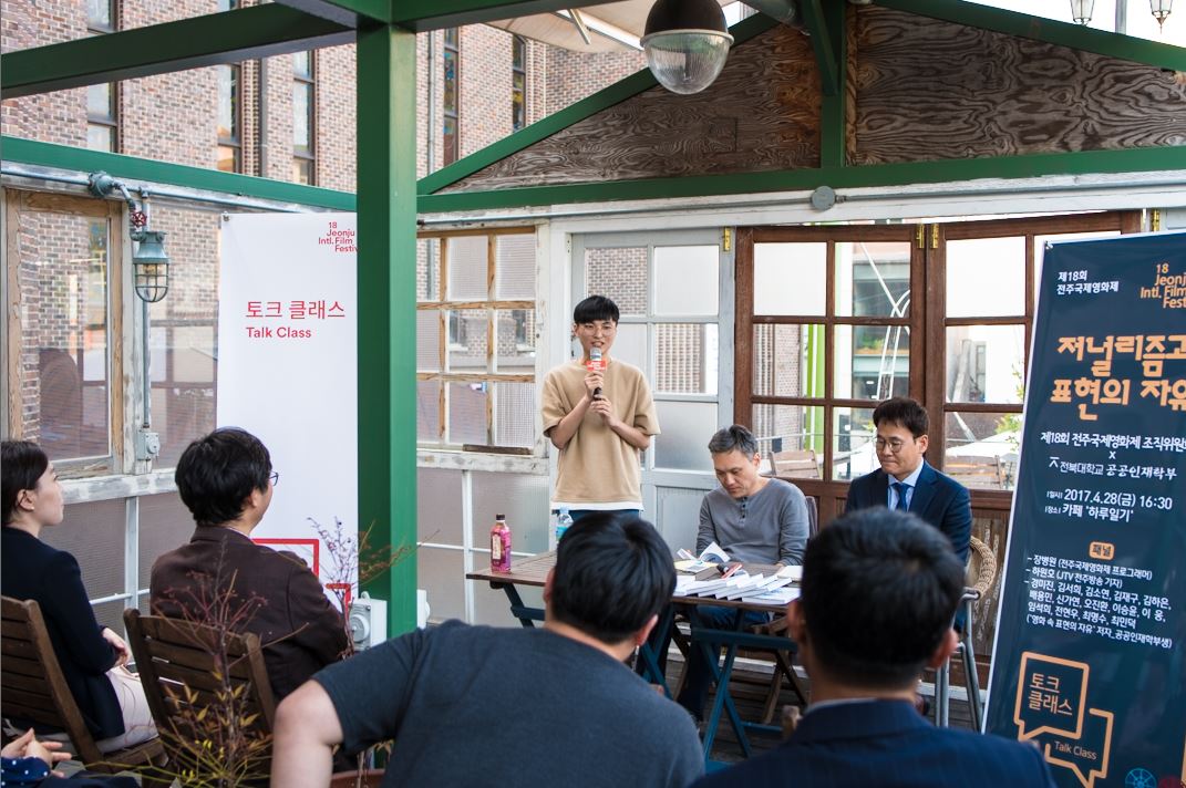 학생들은 28일 오후 2시부터 전주국제영화제 프론트라인 섹션에서 상영된 ‘유령의 도시’를 관람하고, 오후 4시 30분부터 장병원 영화제 프로그래머와 하원호 JTV전주방송 기자가 패널로 참석한 가운데 ‘저널리즘과 표현의 자유’라는 주제로 저널리즘, 영화, 표현의 자유에 대해 토론했다.