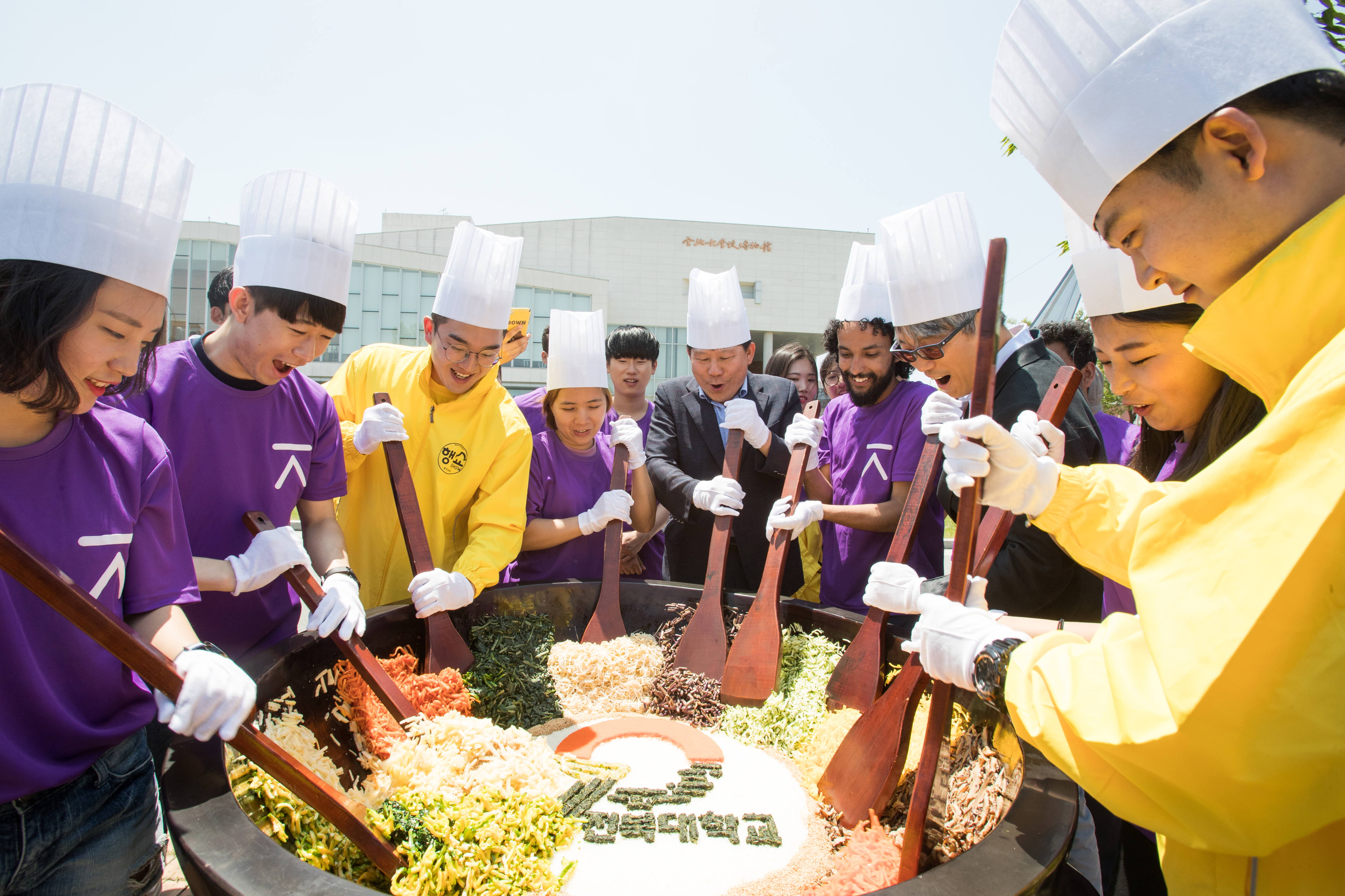 대동제 이튿날인 25일 오후 1시부터 학생회관 앞 시계탑에서 유학생과의 소통과 융합의 의미를 담아 유학생과 함께하는 비빔밥 비비기 행사를 가졌다.