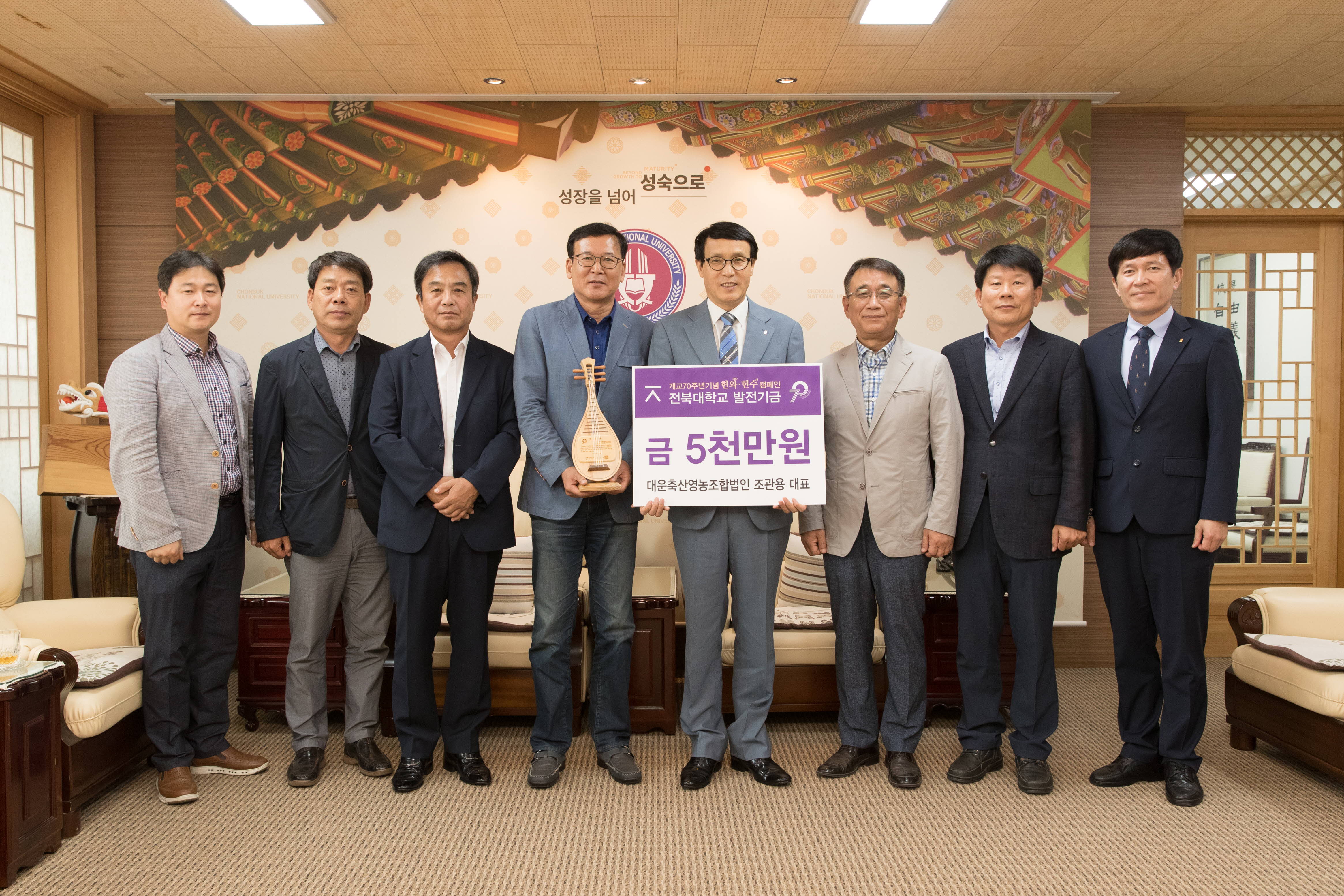 조관용 대운축산영농조합법인 대표(축산학과 80학번)가 대학 발전을 기원하며 5천만 원의 발전기금을 기탁했다.