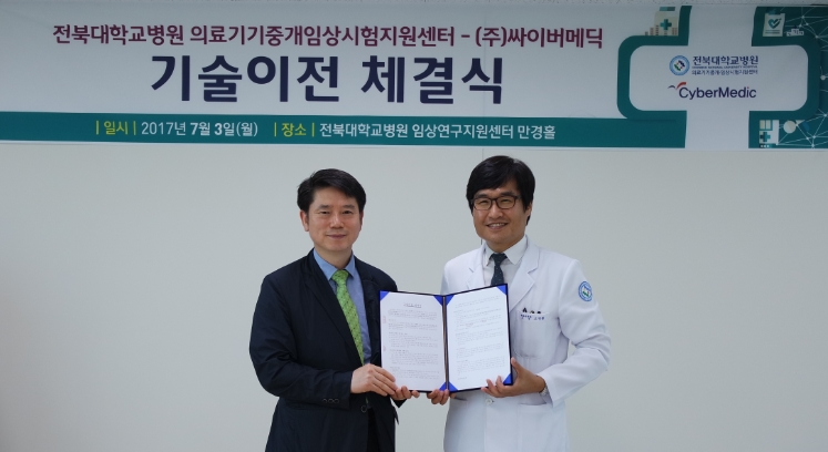 특히 이번 기술이전은 보건복지부 지원으로 운영되고 있는 전북대병원 의료기기중개임상시험지원센터의 인프라를 통해 연구자의 아이디어가 실제 사용자 관점에서 고안되고 대학과 기업의 긴밀한 협력을 통해 실용화와 디자인 최적화 등이 이뤄졌다는 점에서 의미가 크다.