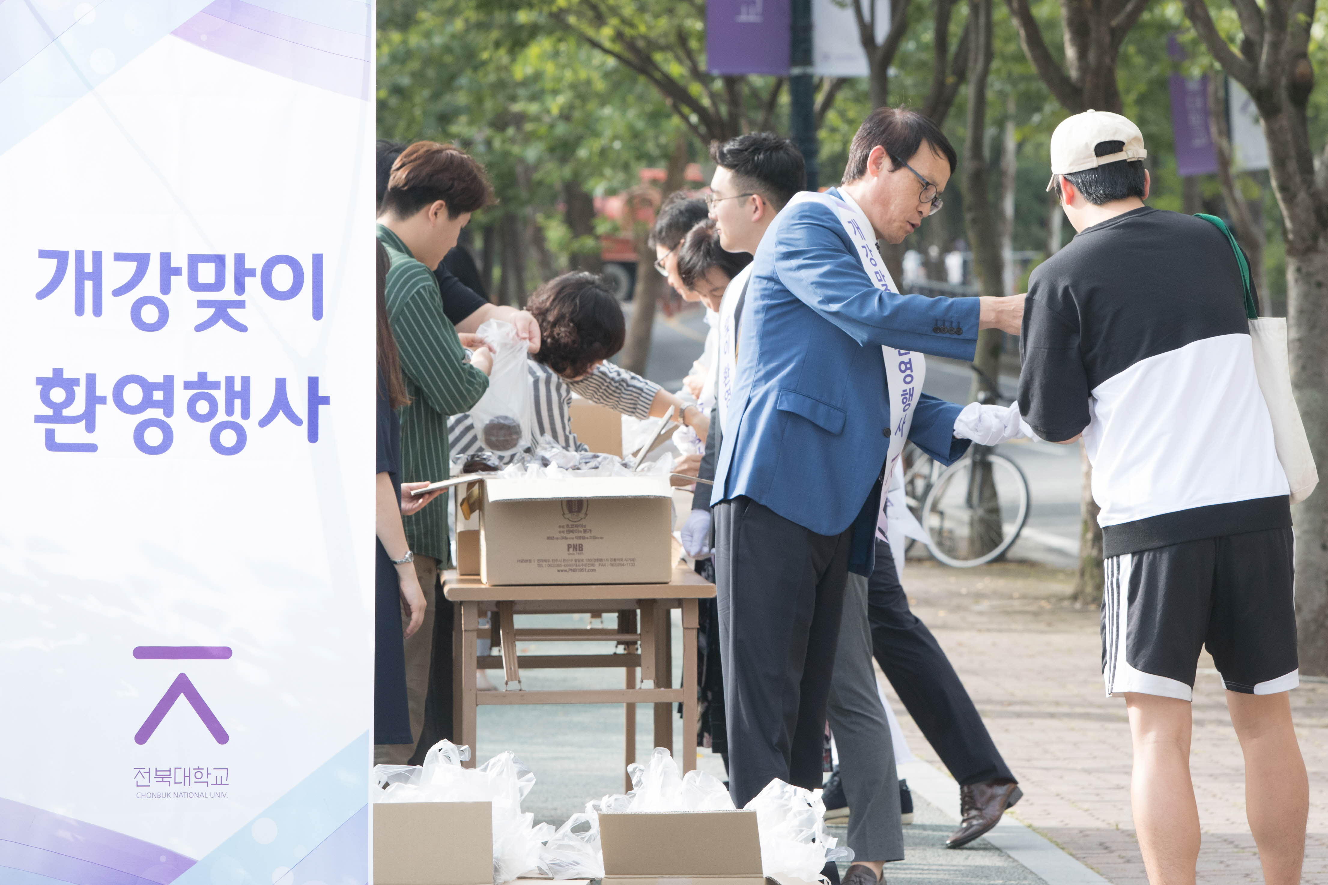 이날 이른 아침 이남호 총장을 비롯한 대학본부 보직자들은 전주와 익산 특성화캠퍼스 각 출입문에 나와 등교하는 학생들에게 5천인분의 빵과 음료를 나눠주며 소통의 시간을 가졌다.