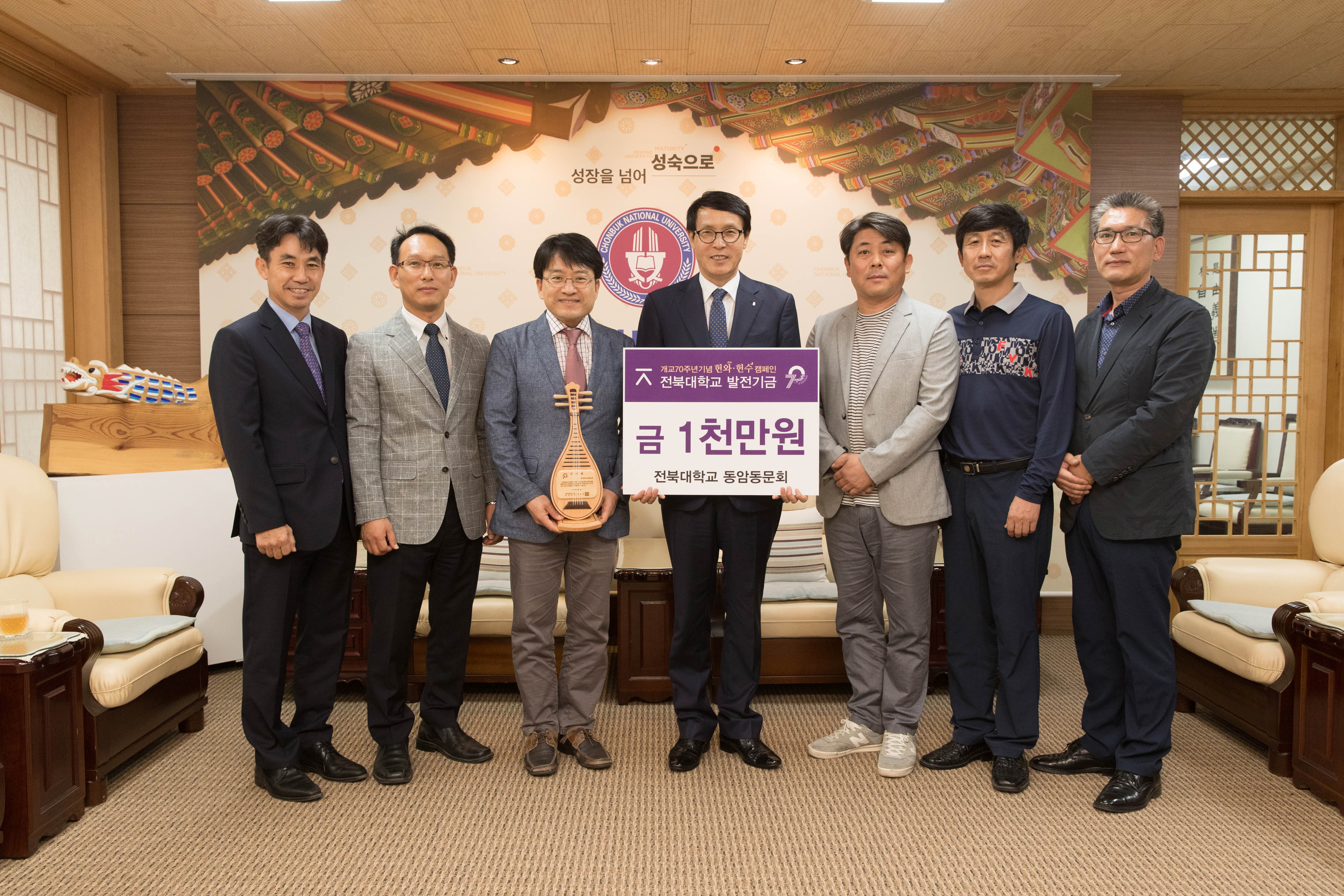 동암고 졸업 교수·직원 모임인 '전북대 동암동문회'(회장 정두영)가 개교 70주년 축하의 의미를 담아 1천만 원의 기금을 기탁한 것.