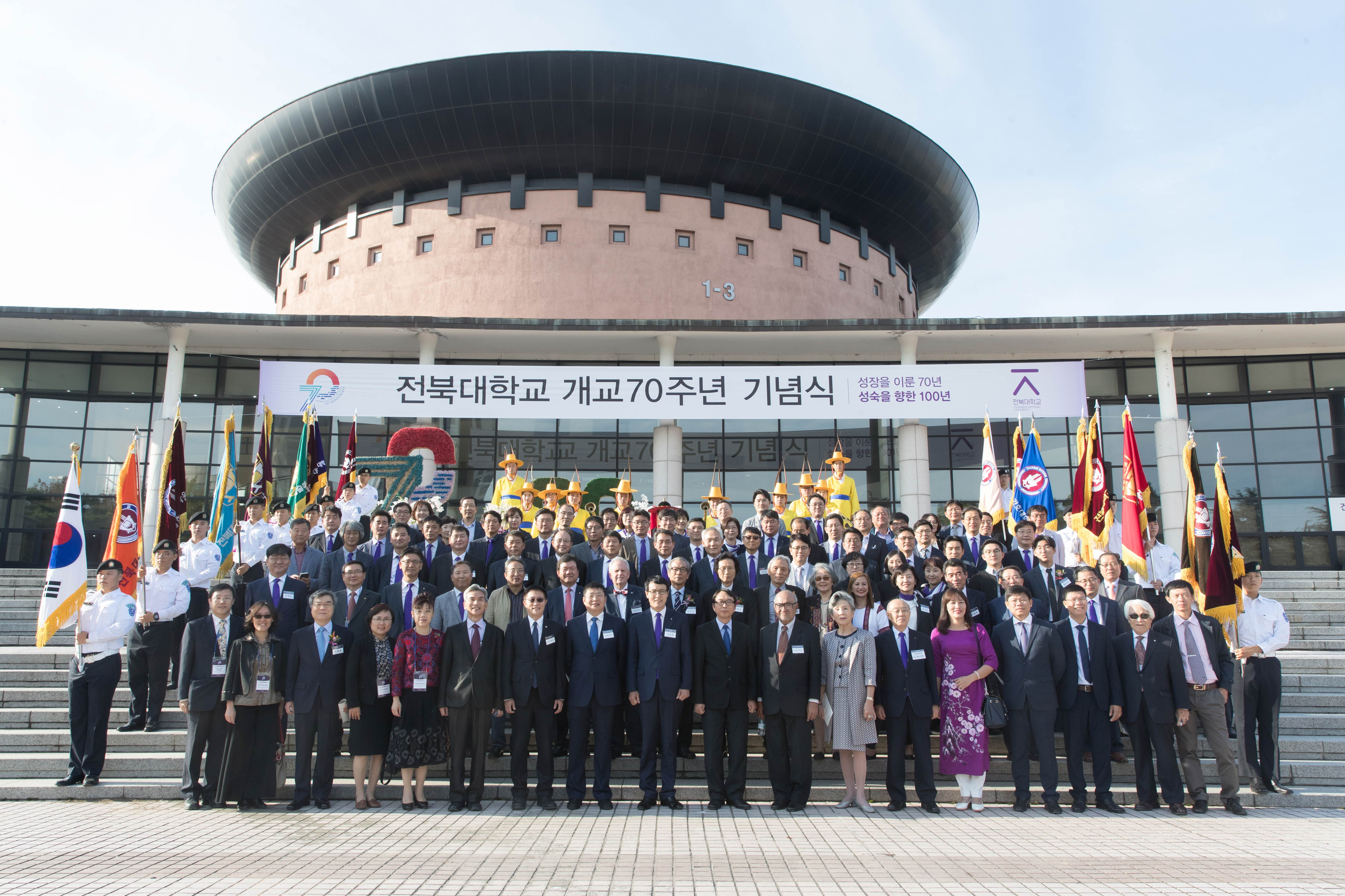 이날 기념식에는 이남호 총장을 비롯한 대학 구성원을 비롯해 김수곤·장명수·신철순·두재균·서거석 전 총장 등 역대 총장단, 이용규 총동창회장, 한승헌 전 감사원장, 윤여표 전국국·공립대총장협의회장(충북대 총장)을 비롯한 국내외 주요 대학 총장단, 송하진 전북도지사를 비롯한 자치단체장, 미국·중국·일본 등 8개국 13개 대학 총장단, 주한 에콰도를 대사를 비롯한 각국 대사와 대사관 관계자 등 등 2천여 명이 참석한 가운데 70년의 발자취를 돌아보고 대학 위상과 미래 비전을 대내외에 알리는 다채로운 행사가 종일 열렸다.