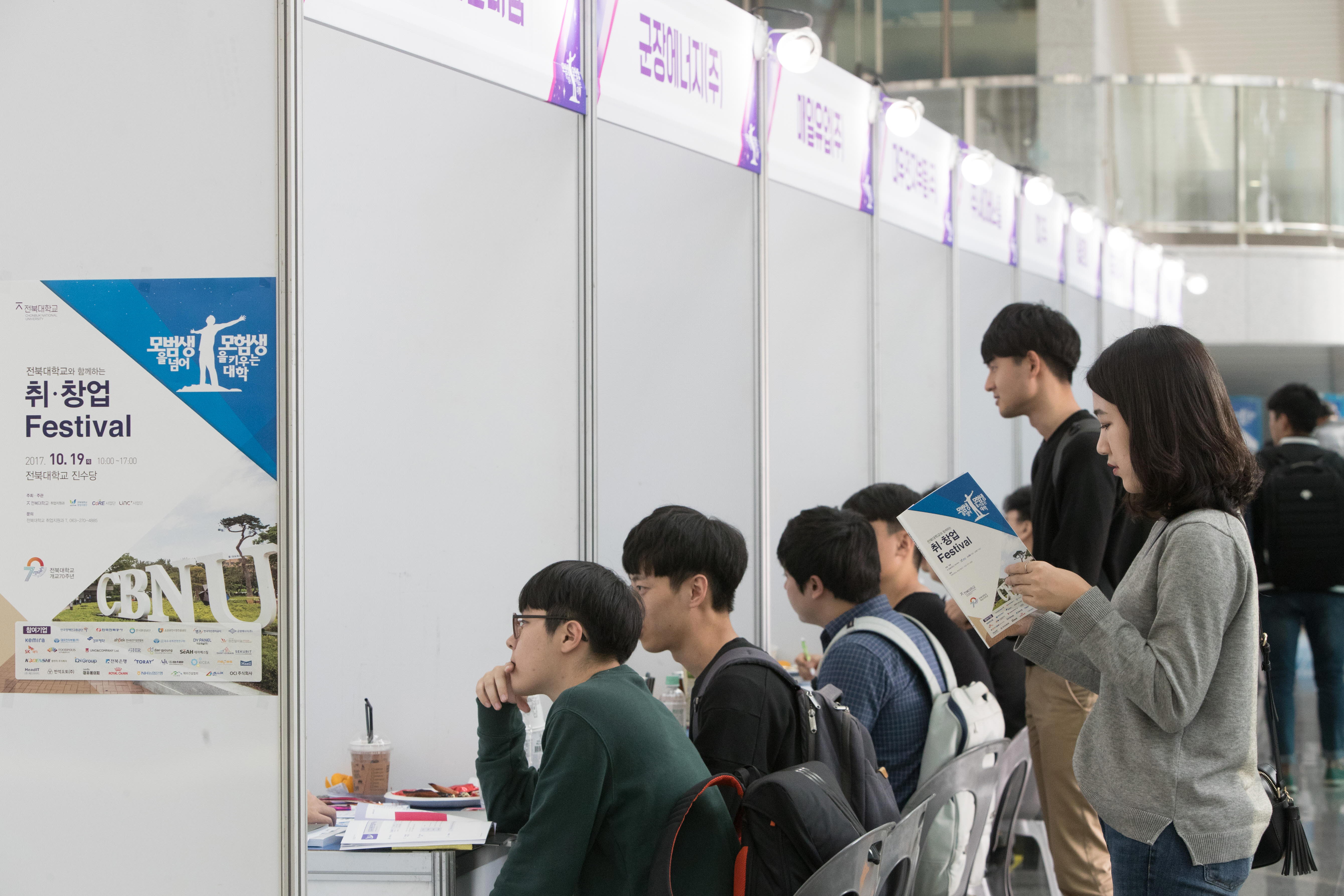특히 OCI(주), 농협은행, ㈜전북은행, ㈜세아베스틸, 도레이첨단소재(주), 군장에너지(주) 등 도내·외 굴지의 기업들이 다수 참여한 취업 Zone에서는 행사에 참여한 학생들에게 기업 입사에 필요한 취업역량이나 취업 노하우에 대한 열띤 상담을 진행하였으며, 1,200여명의 학생들이 상담에 참여할 정도로 호응이 뜨거웠다.