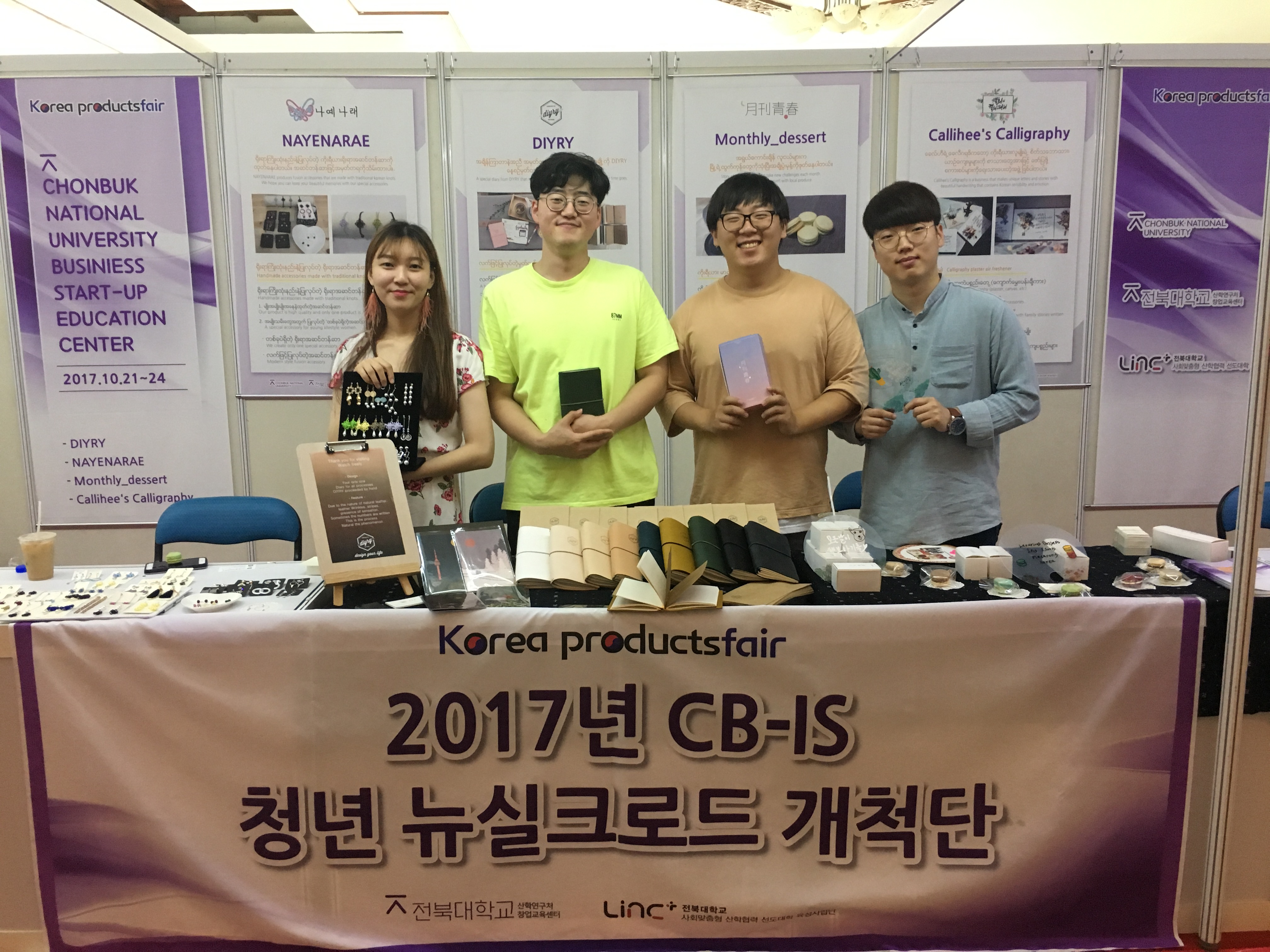 올해에는 총 4개 창업동아리 팀이 참여해 전통매듭을 이용한 액세서리와 지역 특산품을 활용한 마카롱, 한국의 아름다운 명소가 들어간 셀프 핸드메이드 다이어리 등을 해외 박람회에서 선보였다. 이 제품들은 한국적인 요소가 많이 들어간 제품들이기 때문에 추후 해외 수출 길을 개척하는 등의 좋은 성과가 기대된다.