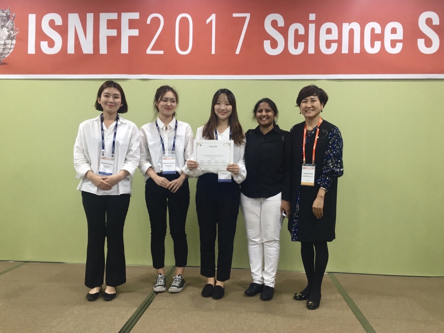 우리대학 학생들이 10월 22일~25일에 국제건강기능식품과학회(ISNFF)에서 주최하는 제10회 국제건강기능식품학술대회 'Science Slam Award'에서 최우수상을 수상하는 성과를 올렸다.