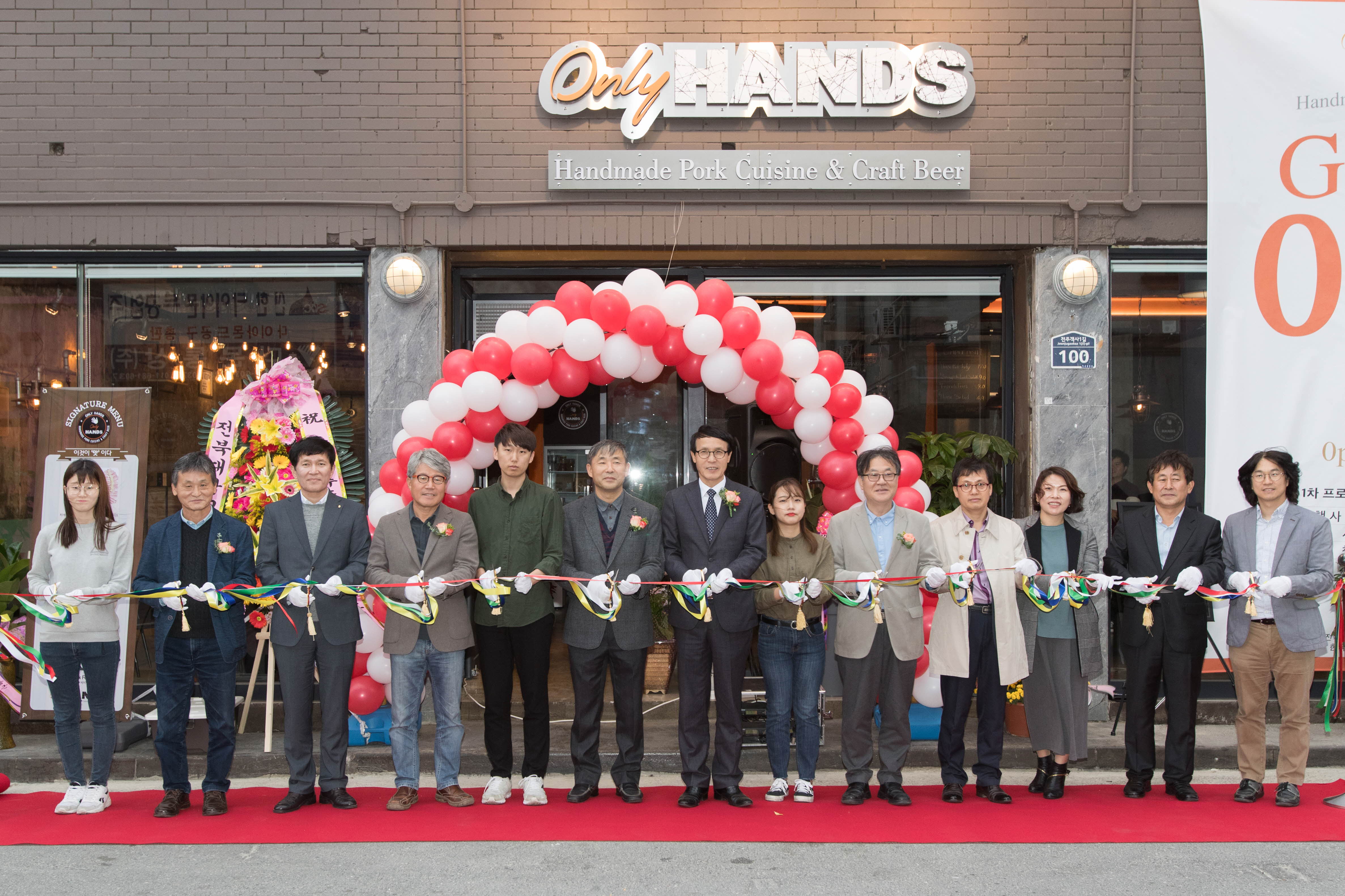 ‘온리핸즈’는 우리대학 동물분자유전육종사업단 연구 기반의 지역 축산 브랜드인 ‘두지포크’와 새만금 보리를 이용한 수제 맥주가 결합한 외식 브랜드다.