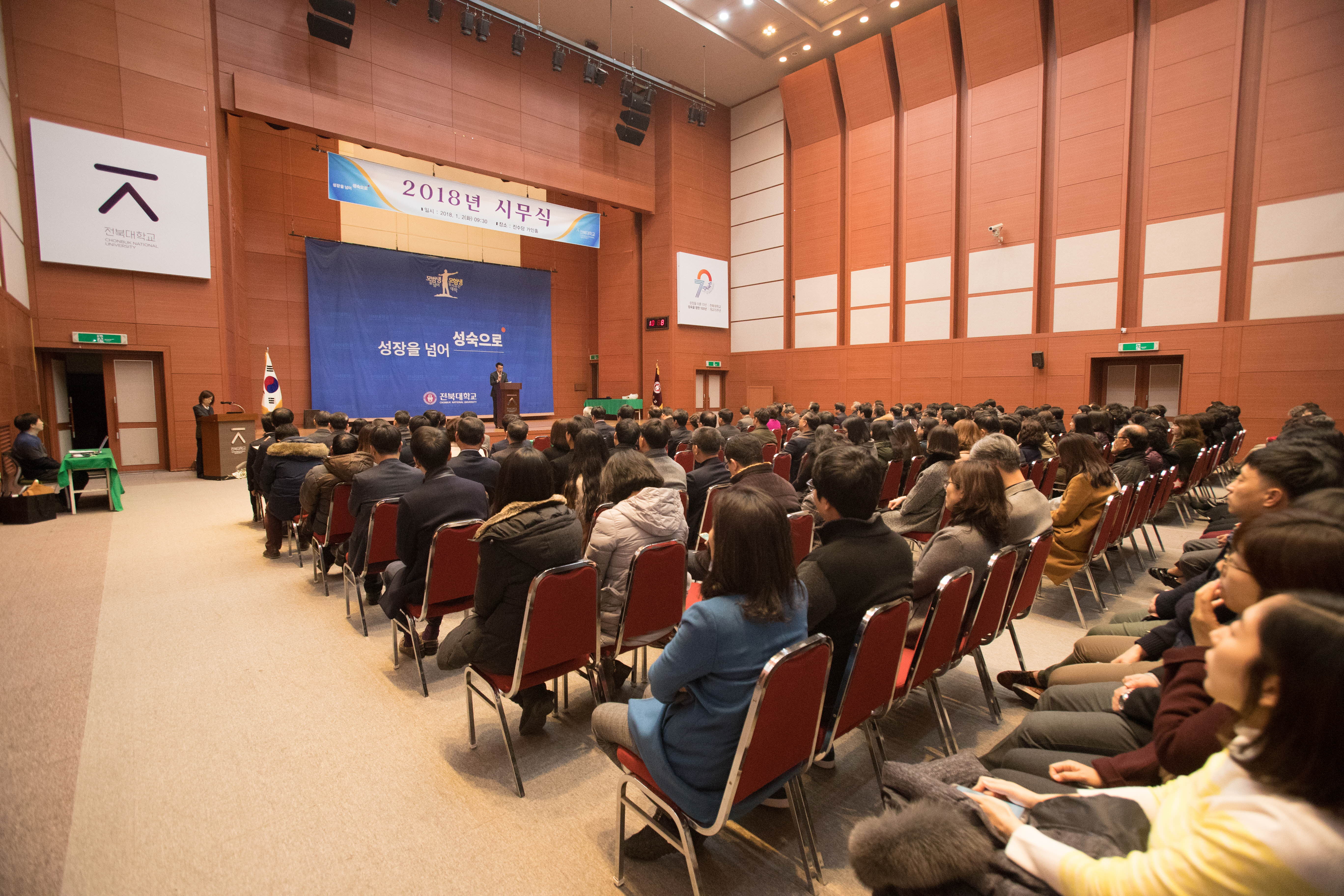 우리대학이 1월 2일 오전 9시 30분 진수당 가인홀에서 이남호 총장을 비롯한 본부 보직교수, 단대학장, 교직원 등 500여명이 참석한 가운데 시무식을 갖고 2018년을 힘차게 시작했다.