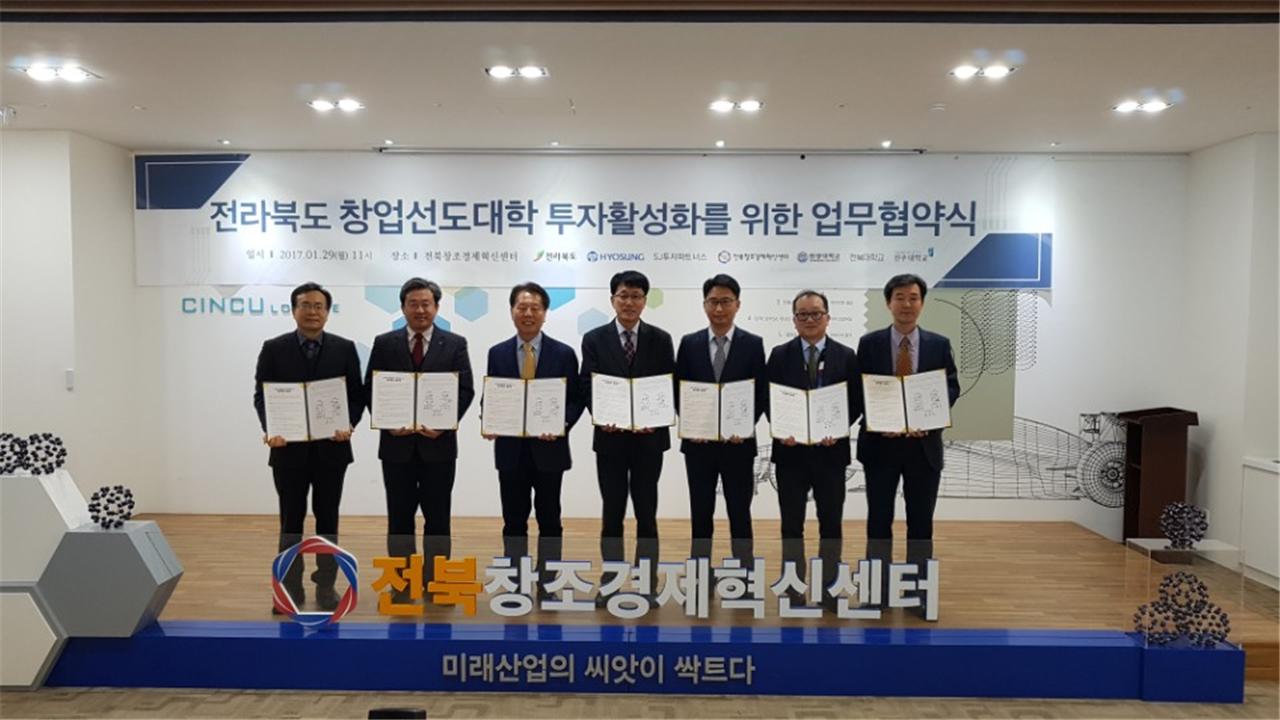 전라북도와 ㈜효성, 전북창조경제혁신센터, SJ투자파트너스 등이 전라북도 창업선도대학 투자 활성화를 위해 긴밀히 협력하고 2억 원의 투자를 확약했기 때문이다.