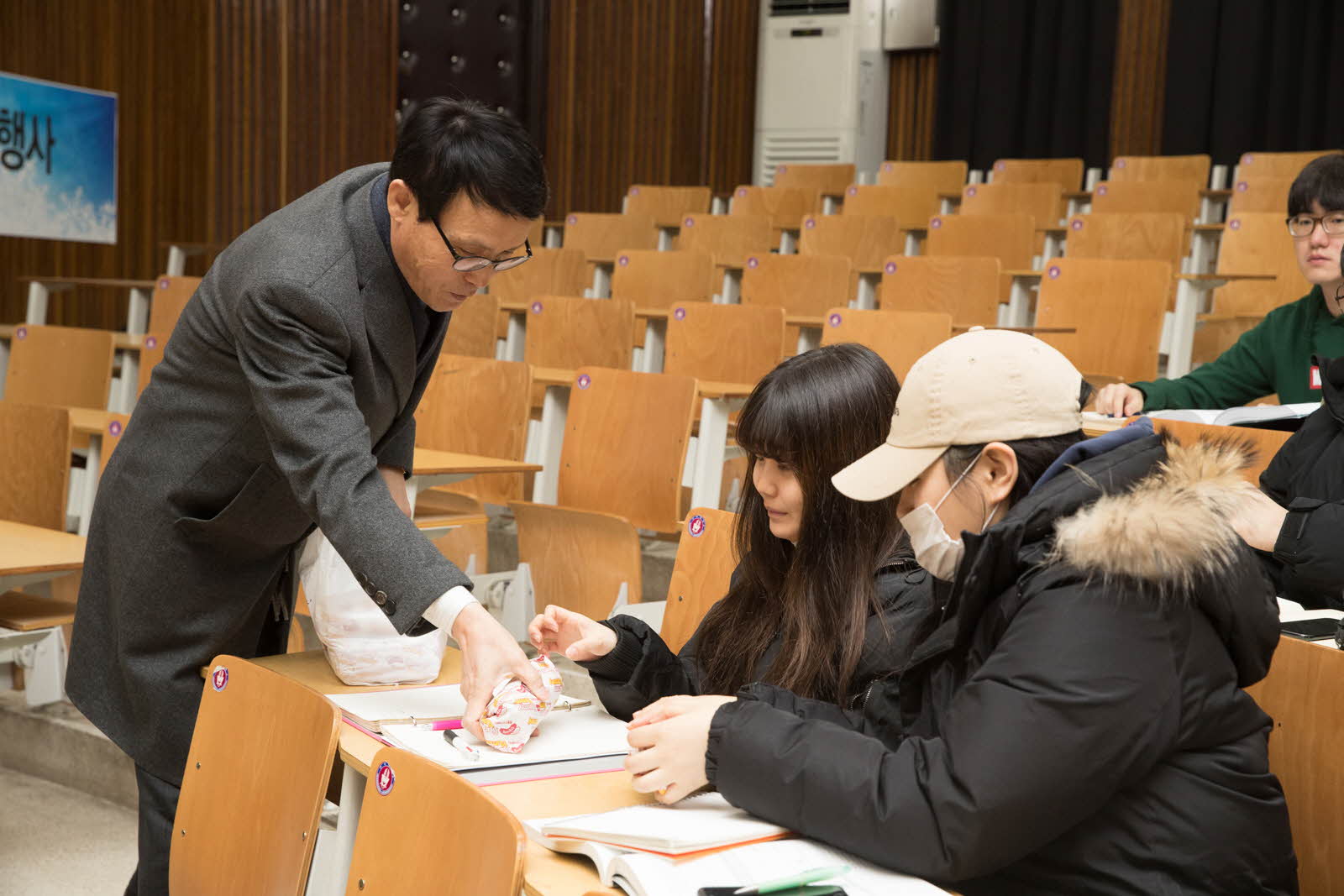 우리대학이 기초교육 강화를 위해 시행하고 있는 겨울 특별학기 수업을 받고 있는 학생들을 격려하는 행사를 가져 학생들의 큰 호응을 얻었다.