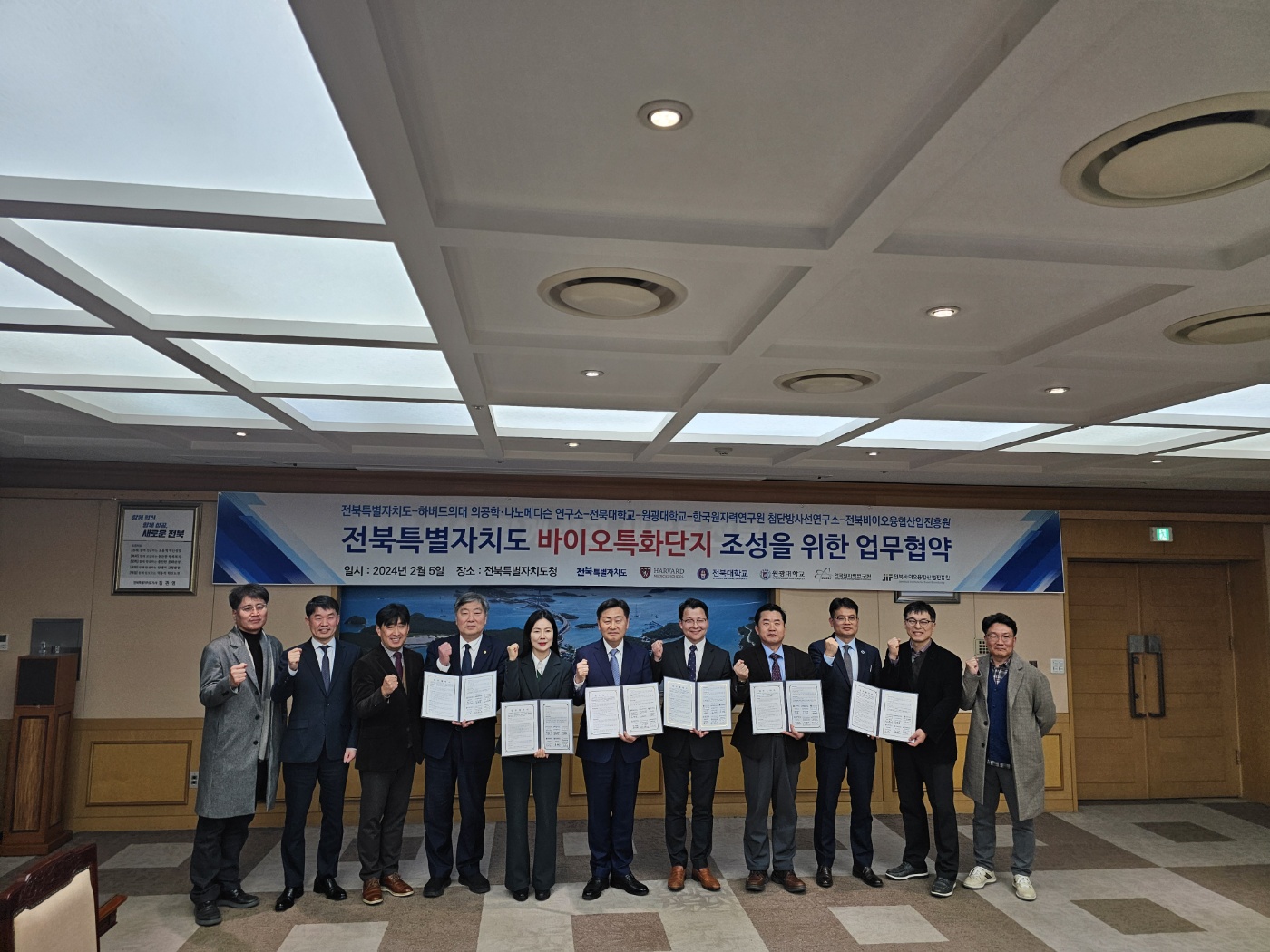 전북대는 5일 오후4시 전북특별자치도청에서 미국 하버드대학교 의학전문대학원 산하 매사추세츠 종합병원(Massachusetts General Hospital, MGH) 의공학·나노메디슨연구소(소장 최학수)와 바이오특화단지 조성을 위해 유기적 협조 체계를 구축하고 바이오 산업의 성장과 발전에 기여하자는 데 뜻을 모으고 업무협약을 체결했다.